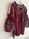 Cada pieza a está tejida a mano en un telar de cintura y es una prenda única. Tejido manta algodón 100% con uniones de crochet en color a contraste y pieza en los hombros realizada en telar de cintura. Es una auténtica joya para toda la vida.