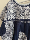 San Antonino azul marino con motivos florales en tonos plata. Talla Xs/S: 43 cm ancho de pecho (62 cm...