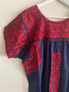 San Antonino azul marino con motivos florales bordados en rojo apagado bonito y favorecedor. Talla Xs/S: 43 cm ancho...
