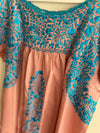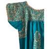 San Antonino turquesa con motivos florales en tono oro. Talla Xs/S: 43 cm ancho de pecho (62 cm con las tablas...