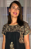San Antonino negro con motivos florales bordados en dorado. Talla Xs/S: 43 cm ancho de pecho (62 cm con las...