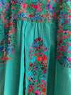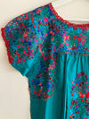 San Antonino verde turquesa con motivos florales multicolor. Talla Xs/S: 43 cm ancho de pecho (62 cm con las tablas abiertas...