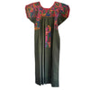Precioso vestido de algodón cuajado de flores multicolores bordados a mano en el canesú, el vuelo de la falta...