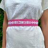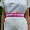 Cinturón tejido en telar de cintura por mujeres indígenas en México. Los colores y motivos del bordado varían...