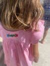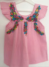 Precioso vestido de algodón cuajado de flores multicolores bordados a mano en el canesú, el vuelo de la falta...