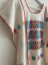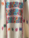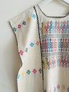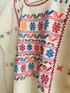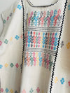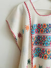 Delicado huipil con base cruda y brocados multicolor, motivos geométricos y florales, una joya que brillará en tu...