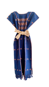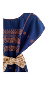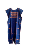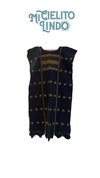 Huipil de base azul marino con pespunte camel a contraste. Este vestido tan especial tiene motivos florales y geométricos...