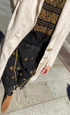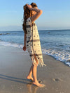 Huipil de base negra con pespunte camel a contraste. Este vestido tan especial tiene motivos florales y geométricos...